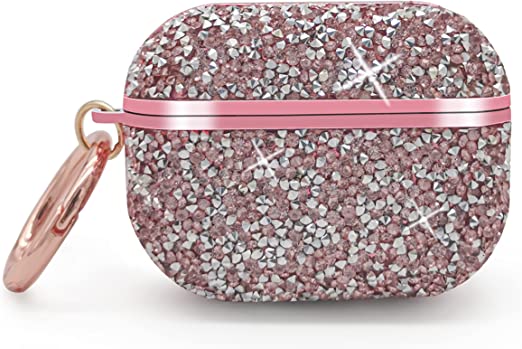 Glliter Luxury Case Compatible with Airpod Pro for Women Teen Girls, Bling Cute Protective Cover with Keychain for Air Pod Pro Charging Case (Pink)