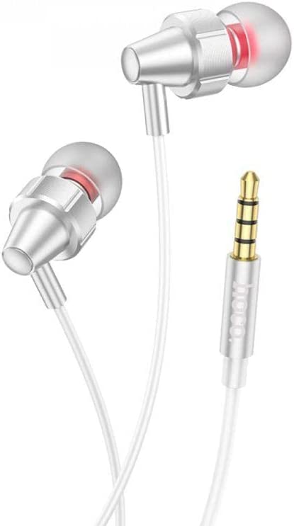 HOCO M90 - Delight wired Earphone with Mic (Length: 1.2m, Plug: 3.5mm) Compabitle with iPhone Samsung Xiaomi Oppo - Light Silver