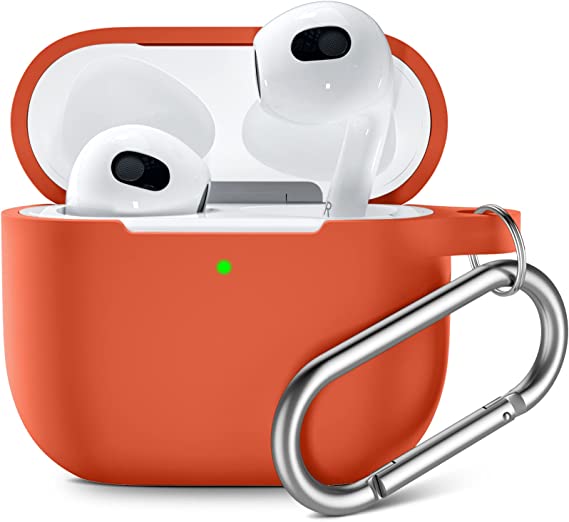 Upeak Compatible with AirPods 3rd Generation Case 2021, Fully Wrapped Silicone Protective for Apple AirPods 3 Case, With Keychain,Case Cover Shock Absorption, Coral