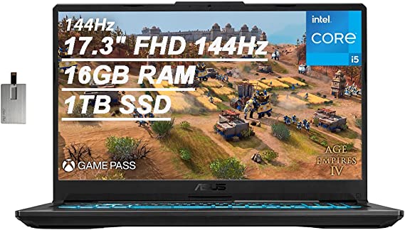 2021 ASUS TUF Gaming 17.3" FHD 144Hz Laptop Computer, Intel Core i5-11260H (Beats i7-8750H), 16GB RAM, 1TB PCIe SSD, RGB Backlit Keyboard, GeForce RTX 3050 Graphics, Windows 10, Grey, 32GB USB Card