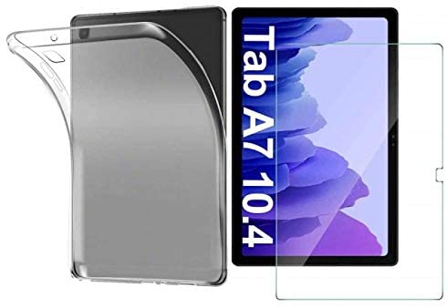 MARGOUN 2 Pack Clear Case for Samsung Galaxy Tab A7 with Screen Protector (-T500 / T505) 10.4 inch 2020 , Anti-Slip Slim Transparent Soft Rubber TPU Silicone Cover with Tempered Glass