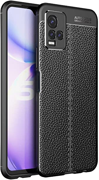 For Vivo Y33s 4G, Original Leather Pattern Back Case Cover Carbon Fiber Litchi Shockproof From CompuMisr - Black