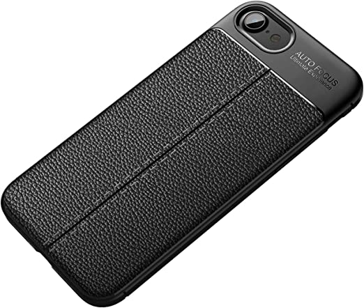 iPhone SE 3 (2022), Premium quality Case From GrabMobily -, Leather Pattern Shockproof Cover Durable Ultra Thin Carbon Fiber Brushed Protection Case -Slip-Resistant - Original New cover - Black