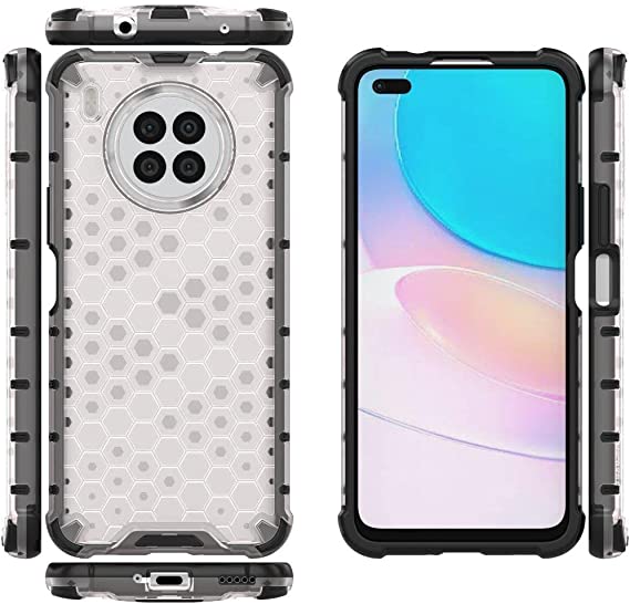 لهاتف Honor 50 Lite, جراب اصلي مقاوم للصدمات بنمط خلية النحل من GrabologyStore - ابيض شفاف