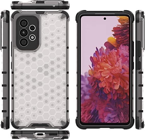 لهاتف Samsung Galaxy A53 5G, جراب اصلي مقاوم للصدمات بنمط خلية النحل من GrabologyStore - ابيض شفاف