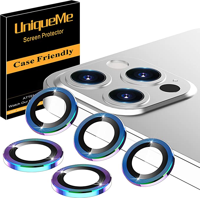 [5 Pack] UniqueMe Camera Lens Protector Compatible for iPhone 12 Pro Max 6.7 inch, [Precise Cutout] Camera Cover Circle Tempered Glass - Rinbow