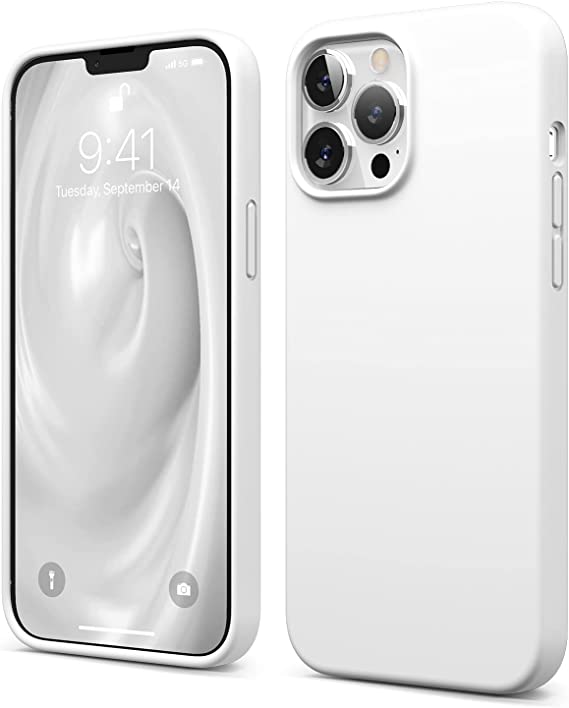 elago Compatible with iPhone 13 Pro Max Case, Liquid Silicone Case, Full Body Screen Camera Protective Cover, Shockproof, Slim Phone Case, Anti-Scratch Soft Microfiber Lining, 6.7 inch (White)