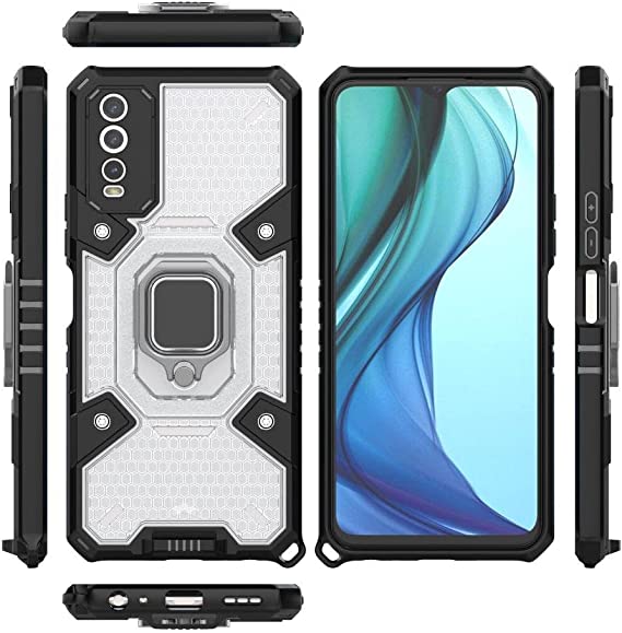 Compatible Case for Vivo Y20 / Vivo Y20s, Space Capsule Pattern Anti-Slip Protective, Ultra Shock Absorption, Kickstand Ring, with Lanyard. Cover for Vivo Y20 / Vivo Y20s - Translucent/Black