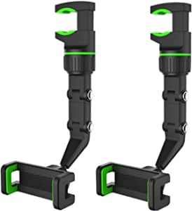 2 Pack 360° Rearview Mirror Phone Holder, Universal Car Phone Holder Cell Phone Stand for Car Multifunctional Mount Phone and GPS Holder Green
